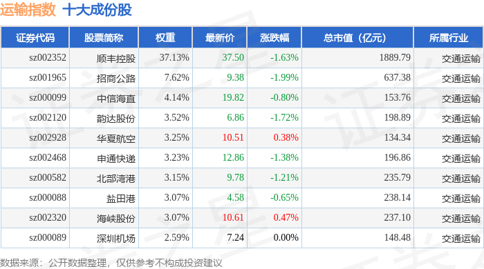 资金流向方面,运输指数(399237)成份股当日主力资金净流出合计2.33亿元,游资资金净流入合计7686.22万元,散户资金净流入合计1.57亿元。成份股资金流向详情见下表:
