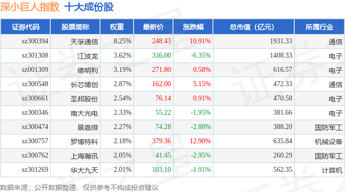深小巨人(399268)指数十大成份股详情如下: