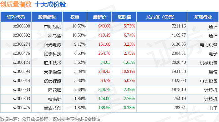证券之星消息,1月30日,创质量(399269)指数报收于8645.74点,涨1.89%,成交2025.11亿元,换手率4.83%。当日该指数成份股中,上涨的有41家,太辰光以12.91%的涨幅领涨,下跌的有58家,首华燃气以9.51%的跌幅领跌。