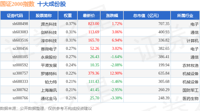 证券之星消息,1月30日,国证2000(399303)指数报收于10865.03点,跌0.59%,成交8602.61亿元,换手率4.11%。当日该指数成份股中,上涨的有835家,杰普特以20.0%的涨幅领涨,下跌的有1128家,晓程科技以20.0%的跌幅领跌。