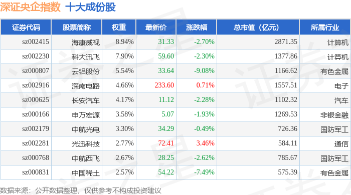 证券之星消息,1月30日,深证央企(399335)指数报收于4624.77点,跌2.39%,成交714.74亿元,换手率1.47%。当日该指数成份股中,上涨的有8家,深科技以4.5%的涨幅领涨,下跌的有40家,云南铜业以10.01%的跌幅领跌。