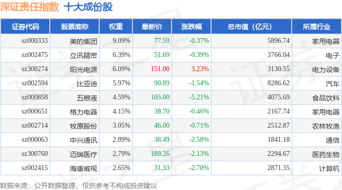 深证责任(399341)指数十大成份股详情如下: