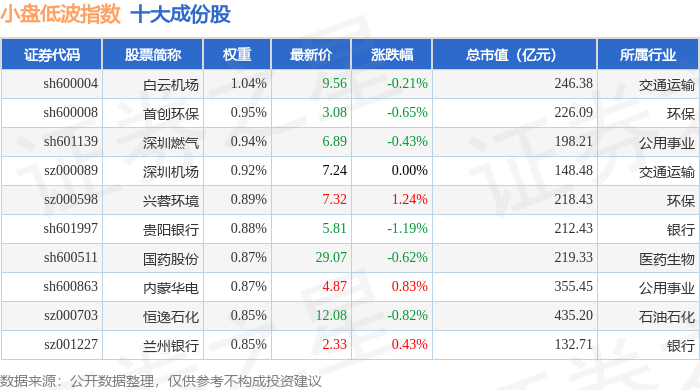小盘低波(399408)指数十大成份股详情如下: