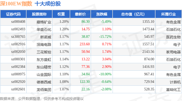 深100EW(399632)指数十大成份股详情如下: