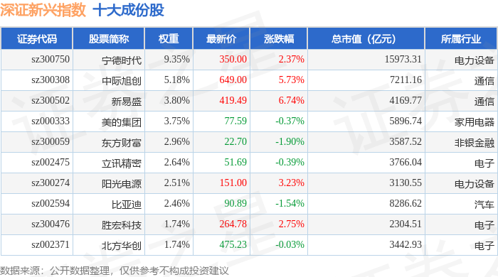 深证新兴(399641)指数十大成份股详情如下: