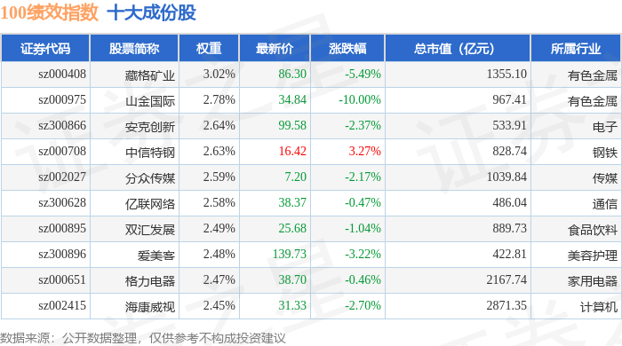 资金流向方面,100绩效(399656)指数成份股当日主力资金净流出合计24.72亿元,游资资金净流出合计28.27亿元,散户资金净流入合计52.99亿元。成份股资金流向详情见下表: