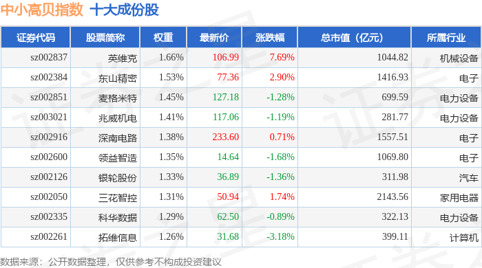 证券之星消息,1月30日,中小高贝(399664)指数报收于1565.31点,跌0.81%,成交1555.83亿元,换手率4.43%。当日该指数成份股中,上涨的有27家,英维克以7.69%的涨幅领涨,下跌的有69家,天齐锂业以7.73%的跌幅领跌。