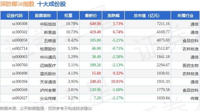 证券之星消息,1月30日,深防御50(399671)指数报收于10309.6点,涨0.39%,成交1518.27亿元,换手率4.12%。当日该指数成份股中,上涨的有14家,天孚通信以10.91%的涨幅领涨,下跌的有35家,新诺威以15.72%的跌幅领跌。