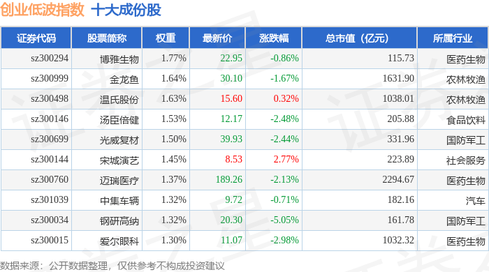 创业低波(399692)指数十大成份股详情如下: