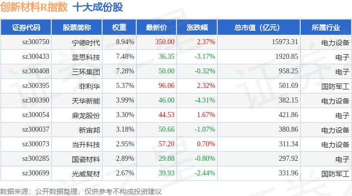 创新材料R(470039)指数十大成份股详情如下: