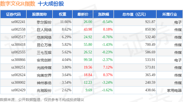 资金流向方面,数字文化R(470047)指数成份股当日主力资金净流出合计7.37亿元,游资资金净流入合计5.07亿元,散户资金净流入合计2.3亿元。成份股资金流向详情见下表: