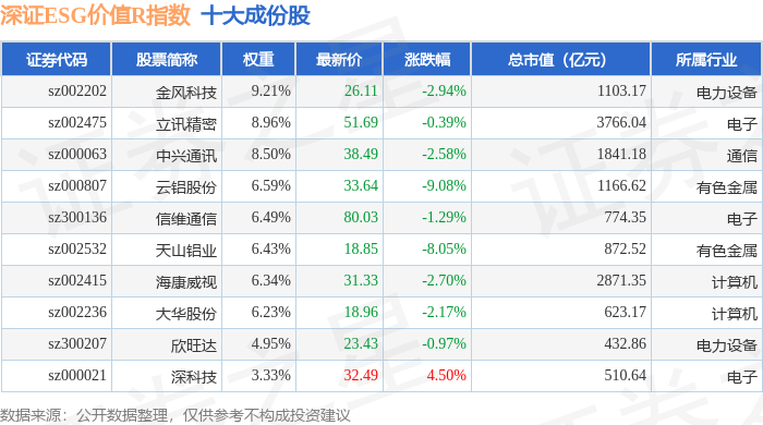 深证ESG价值R(470061)指数十大成份股详情如下:
