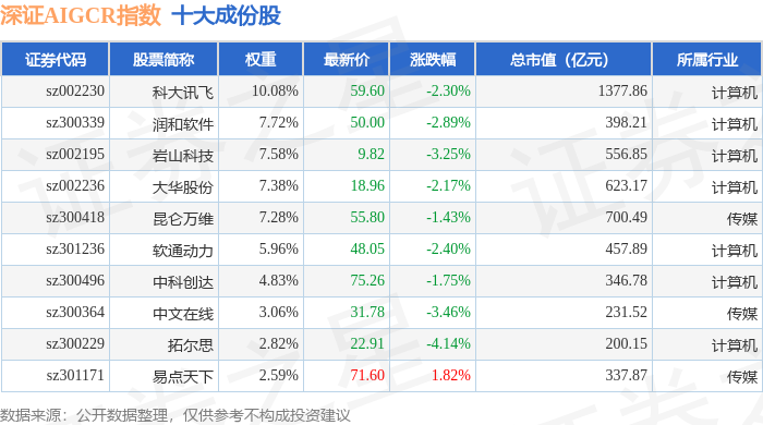 资金流向方面,深证AIGCR(470075)指数成份股当日主力资金净流出合计28.97亿元,游资资金净流入合计7.23亿元,散户资金净流入合计21.73亿元。成份股资金流向详情见下表:
