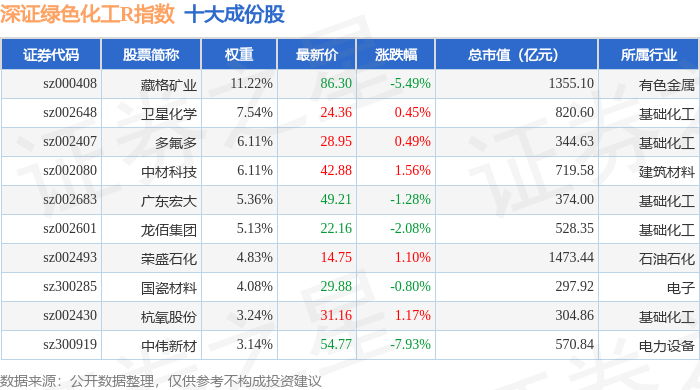 深证绿色化工R(470076)指数十大成份股详情如下: