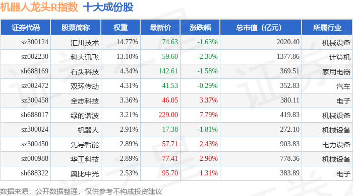 机器人龙头R(480071)指数十大成份股详情如下: