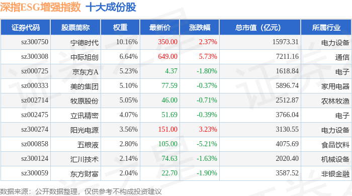 证券之星消息,1月30日,深指ESG增强(970032)指数报收于1609.78点,跌0.35%,成交3903.05亿元,换手率2.11%。当日该指数成份股中,上涨的有45家,天孚通信以10.91%的涨幅领涨,下跌的有149家,铜陵有色以10.01%的跌幅领跌。
