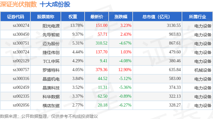 资金流向方面,深证光伏(970035)指数成份股当日主力资金净流出合计19.25亿元,游资资金净流出合计10.18亿元,散户资金净流入合计29.43亿元。成份股资金流向详情见下表: