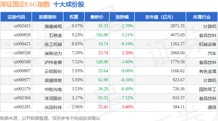 证券之星消息,1月30日,深证国企ESG(970055)指数报收于1492.42点,跌1.97%,成交551.88亿元,换手率1.77%。当日该指数成份股中,上涨的有10家,深科技以4.5%的涨幅领涨,下跌的有38家,云铝股份以9.08%的跌幅领跌。