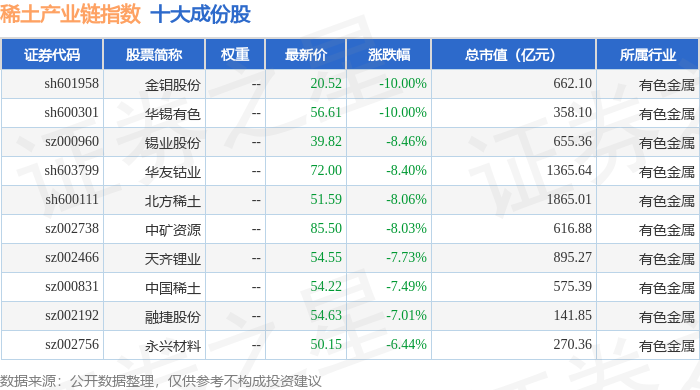 资金流向方面,稀土产业链(989013)指数成份股当日主力资金净流出合计61.56亿元,游资资金净流入合计12.83亿元,散户资金净流入合计48.73亿元。成份股资金流向详情见下表: