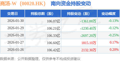 证券之星消息,1月30日南向资金减持1361.0万股商汤-W(00020.HK)。近5个交易日中,获南向资金减持的有3天,累计净减持1341.2万股。近20个交易日中,获南向资金减持的有11天,累计净减持2.11亿股。截至目前,南向资金持有商汤-W(00020.HK)106.07亿股,占公司已发行普通股的26.23%。