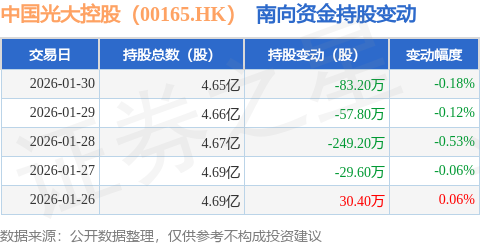 证券之星消息,1月30日南向资金减持83.2万股中国光大控股(00165.HK)。近5个交易日中,获南向资金减持的有4天,累计净减持389.4万股。近20个交易日中,获南向资金减持的有13天,累计净减持884.6万股。截至目前,南向资金持有中国光大控股(00165.HK)4.65亿股,占公司已发行普通股的27.59%。