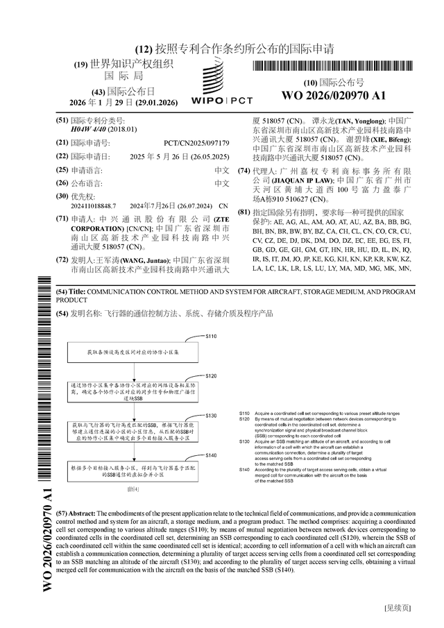 证券之星消息,根据企查查数据显示中兴通讯(000063)公布了一项国际专利申请,专利名为“飞行器的通信控制方法、系统、存储介质及程序产品”,专利申请号为PCT/CN2025/097179,国际公布日为2026年1月29日。