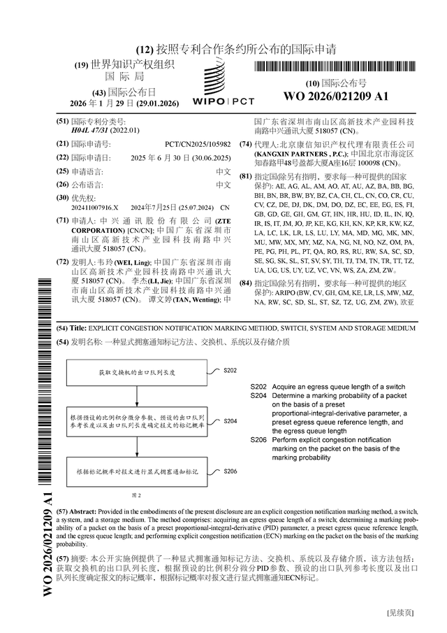 证券之星消息,根据企查查数据显示中兴通讯(000063)公布了一项国际专利申请,专利名为“一种显式拥塞通知标记方法、交换机、系统以及存储介质”,专利申请号为PCT/CN2025/105982,国际公布日为2026年1月29日。