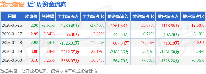 资金流向数据方面,本周龙元建设主力资金合计净流入4349.9万元,游资资金合计净流出2224.51万元,散户资金合计净流出2125.39万元。本周资金流向一览见下表: