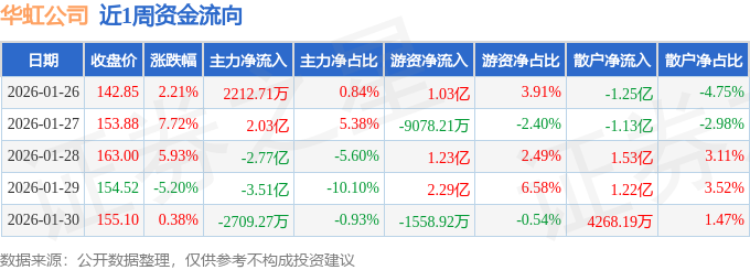 资金流向数据方面,本周华虹公司主力资金合计净流出4.29亿元,游资资金合计净流入3.48亿元,散户资金合计净流入8058.48万元。本周资金流向一览见下表: