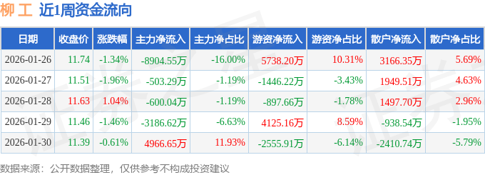 资金流向数据方面,本周柳 工主力资金合计净流出8227.85万元,游资资金合计净流入4963.57万元,散户资金合计净流入3264.28万元。本周资金流向一览见下表:
