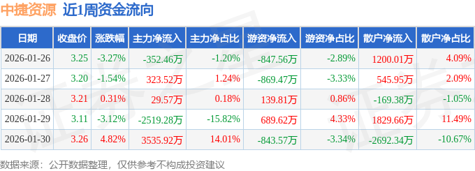 资金流向数据方面,本周中捷资源主力资金合计净流入1017.28万元,游资资金合计净流出1731.17万元,散户资金合计净流入713.89万元。本周资金流向一览见下表: