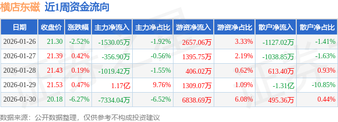 资金流向数据方面,本周横店东磁主力资金合计净流入1508.07万元,游资资金合计净流入1.26亿元,散户资金合计净流出1.41亿元。本周资金流向一览见下表:
