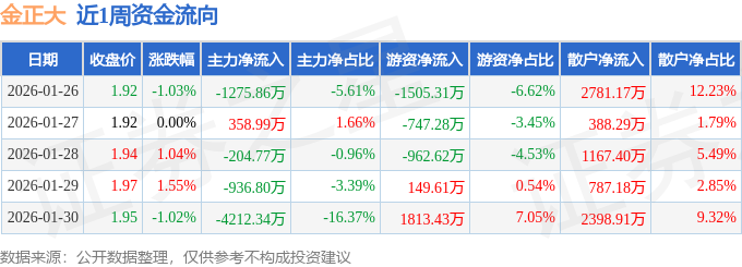 资金流向数据方面,本周金正大主力资金合计净流出6270.78万元,游资资金合计净流出1252.17万元,散户资金合计净流入7522.95万元。本周资金流向一览见下表: