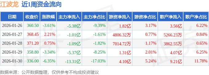 资金流向数据方面,本周江波龙主力资金合计净流出26.16亿元,游资资金合计净流入8.4亿元,散户资金合计净流入17.75亿元。本周资金流向一览见下表: