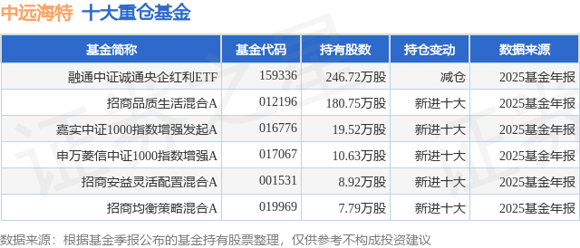 根据2025基金年报公募基金重仓股数据,重仓该股的公募基金共6家,其中持有数量最多的公募基金为融通基金的融通中证诚通央企红利ETF。融通中证诚通央企红利ETF目前规模为6.83亿元,最新净值1.205(1月30日),较上一交易日下跌1.37%,近一年上涨23.68%。该公募基金现任基金经理为蔡志伟 吕寒。蔡志伟在任的基金产品包括:融通巨潮100指数A(LOF),管理时间为2015年2月11日至今,期间收益率为85.18%;融通深证成份指数A,管理时间为2016年11月19日至今,期间收益率为67.81%;融通创业板指数A,管理时间为2016年11月19日至今,期间收益率为52.33%;融通创业板ETF,管理时间为2020年8月12日至今,期间收益率为28.52%。吕寒在任的基金产品包括:融通创业板ETF,管理时间为2023年9月12日至今,期间收益率为66.05%;融通创业板指数A,管理时间为2023年9月12日至今,期间收益率为66.14%;融通中证诚通央企科技创新ETF,管理时间为2024年8月22日至今,期间收益率为51.55%;融通中证诚通央企ESGETF,管理时间为2024年12月5日至今,期间收益率为16.68%。