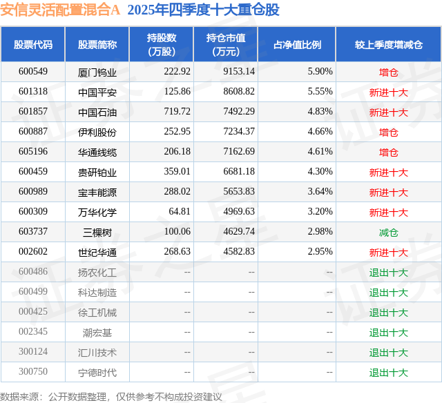 安信灵活配置混合A的前十大重仓股如下: