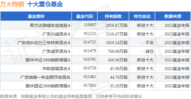 重仓方大特钢的公募基金请见下表: