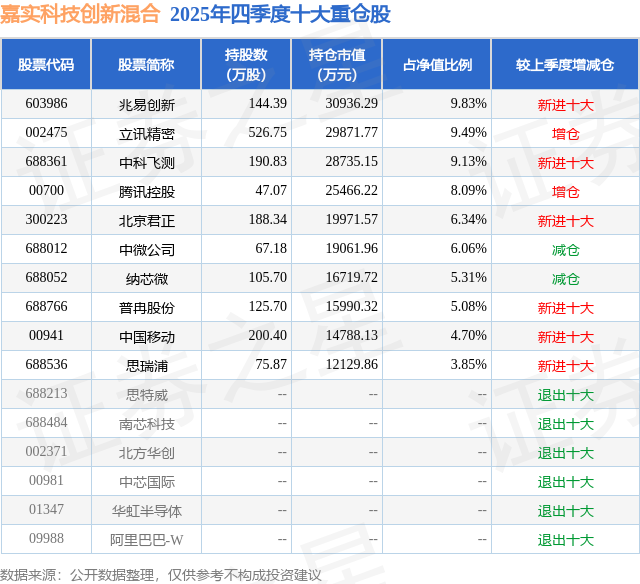 根据2025基金年报公募基金重仓股数据,重仓该股的公募基金共21家,其中持有数量最多的公募基金为嘉实基金的嘉实科技创新混合。嘉实科技创新混合目前规模为31.48亿元,最新净值3.9968(1月30日),较上一交易日上涨1.0%,近一年上涨69.99%。该公募基金现任基金经理为王贵重。王贵重在任的基金产品包括:嘉实文体娱乐股票A,管理时间为2020年8月21日至今,期间收益率为48.94%;嘉实创业板两年定期混合,管理时间为2021年2月10日至今,期间收益率为61.3%;嘉实港股互联网产业核心资产A,管理时间为2021年8月18日至今,期间收益率为-12.92%。