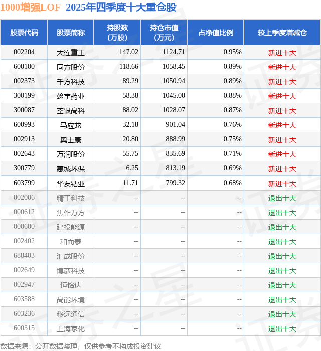 根据2025基金年报公募基金重仓股数据,重仓该股的公募基金共4家,其中持有数量最多的公募基金为富国基金的1000增强LOF。1000增强LOF目前规模为7.48亿元,最新净值2.823(1月30日),较上一交易日下跌0.8%,近一年上涨48.94%。该公募基金现任基金经理为徐幼华 方旻。徐幼华在任的基金产品包括:富国中证红利指数增强A,管理时间为2011年5月13日至今,期间收益率为213.5%;富国大盘价值量化精选混合A,管理时间为2018年7月19日至今,期间收益率为75.23%;富国MSCI中国A股国际通指数增强A,管理时间为2018年12月25日至今,期间收益率为162.93%。方旻在任的基金产品包括:富国中证红利指数增强A,管理时间为2014年11月19日至今,期间收益率为215.94%;富国沪深300指数增强A,管理时间为2014年11月19日至今,期间收益率为198.11%;富国中证500指数增强(LOF)A,管理时间为2014年11月19日至今,期间收益率为183.9%;上证综指ETF,管理时间为2014年11月19日至今,期间收益率为139.34%。