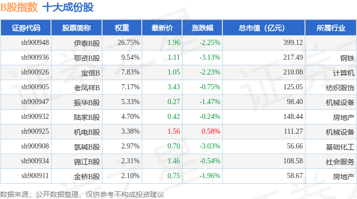B股指数(000003)十大成份股详情如下: