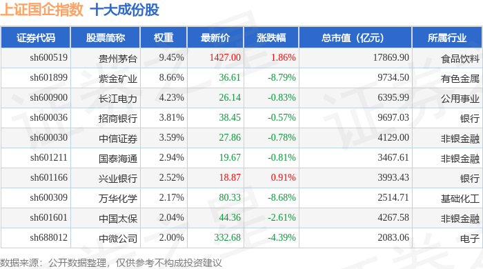 证券之星消息,2月2日,上证国企(000056)指数报收于1255.37点,跌2.77%,成交1983.6亿元,换手率0.57%。当日该指数成份股中,上涨的有18家,中信银行以2.64%的涨幅领涨,下跌的有80家,中金黄金以10.0%的跌幅领跌。