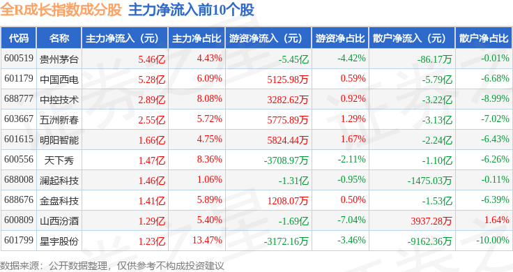 资金流向方面,全R成长(000059)指数成份股当日主力资金净流出合计250.79亿元,游资资金净流入合计100.05亿元,散户资金净流入合计150.74亿元。成份股资金流向详情见下表: