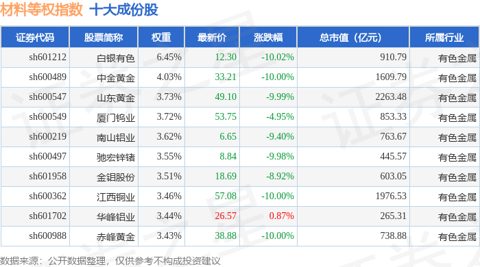 材料等权(000071)指数十大成份股详情如下: