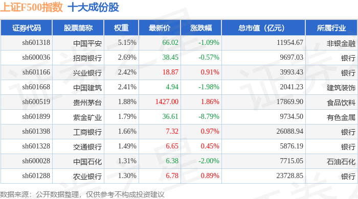 上证F500(000100)指数十大成份股详情如下: