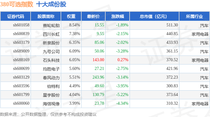 380可选(000107)指数十大成份股详情如下: