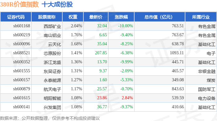 380R价值(000120)指数十大成份股详情如下: