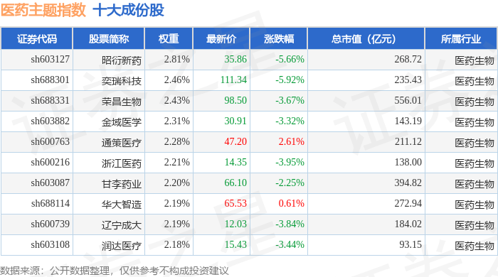 证券之星消息,2月2日,医药主题(000121)指数报收于7874.44点,跌2.57%,成交238.3亿元,换手率1.34%。当日该指数成份股中,上涨的有3家,通策医疗以2.61%的涨幅领涨,下跌的有45家,益方生物以9.0%的跌幅领跌。