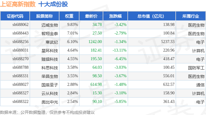 证券之星消息,2月2日,上证高新(000131)指数报收于3873.82点,跌4.65%,成交493.84亿元,换手率2.09%。当日该指数成份股中,上涨的有1家,安恒信息以1.41%的涨幅领涨,下跌的有49家,云天励飞以13.57%的跌幅领跌。