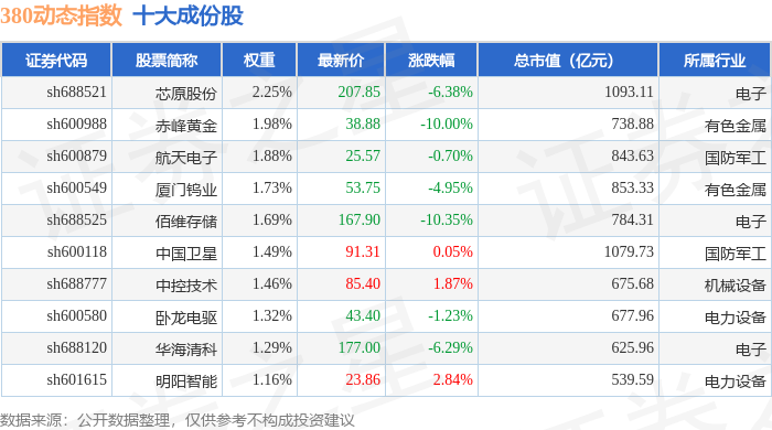 380动态(000141)指数十大成份股详情如下: