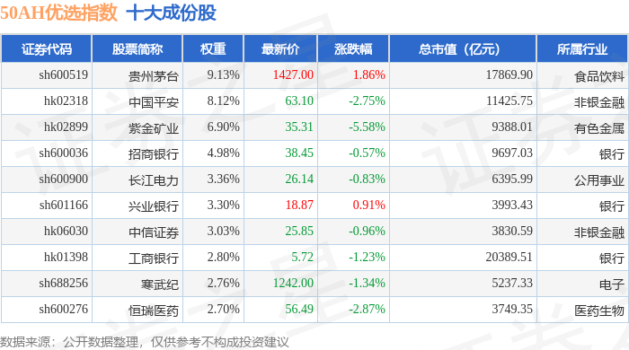 50AH优选(000170)指数十大成份股详情如下: